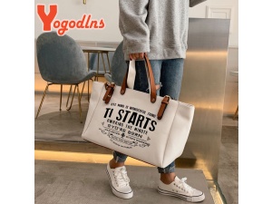 Yogodlns Fashion Canvas Handbag and Purse Female Large Capacity Shoulder Bag Letter Design Crossbody Bag Casual Totes Bag Bolsa