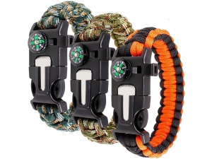 5-in-1 Compass Outdoor Escape Rope Survival Whistle Lifesaving Firestone Bracelet